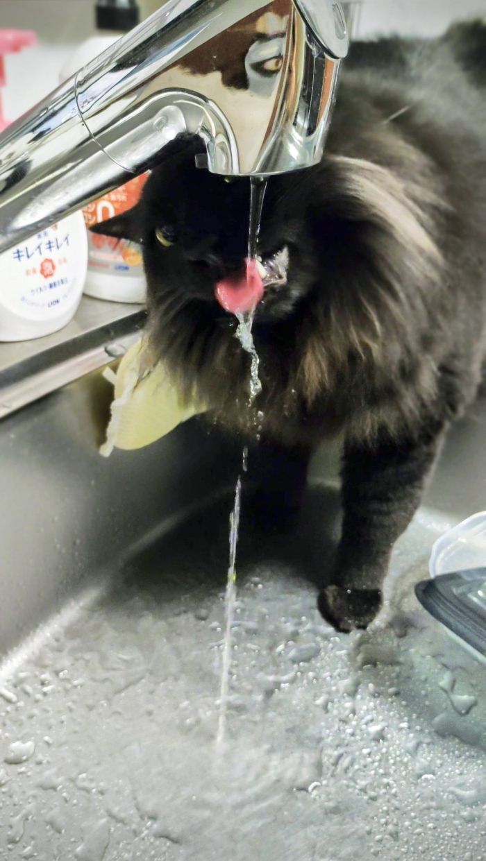 大変申し訳ないと思いつつ、追い出そうと水を出してみたところ…飲み始めるではありませんか…。